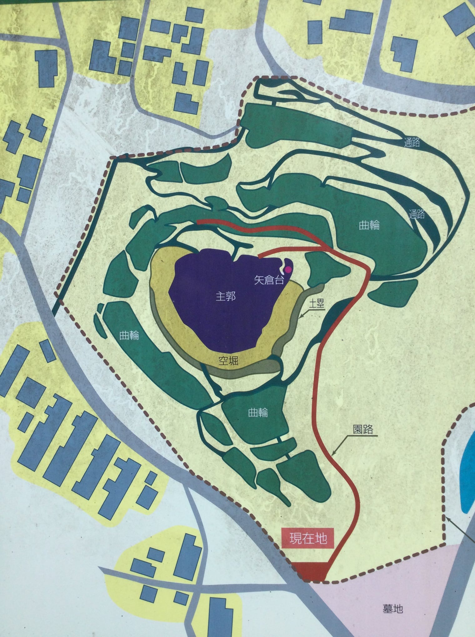 戦国末期の城が実感されるところ。城址一帯はあい変わらぬ