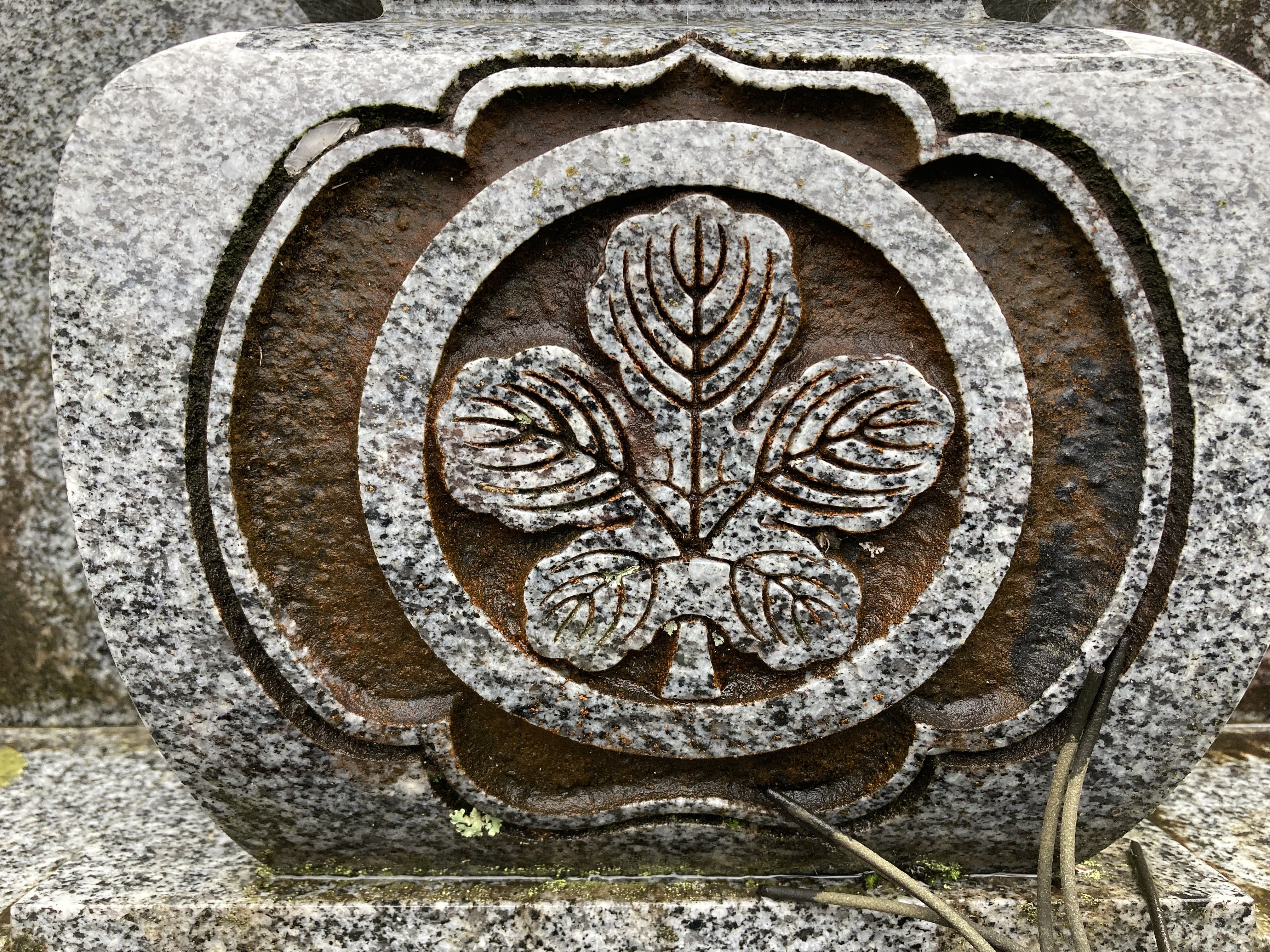 墓所の古い墓石に彫られた家紋