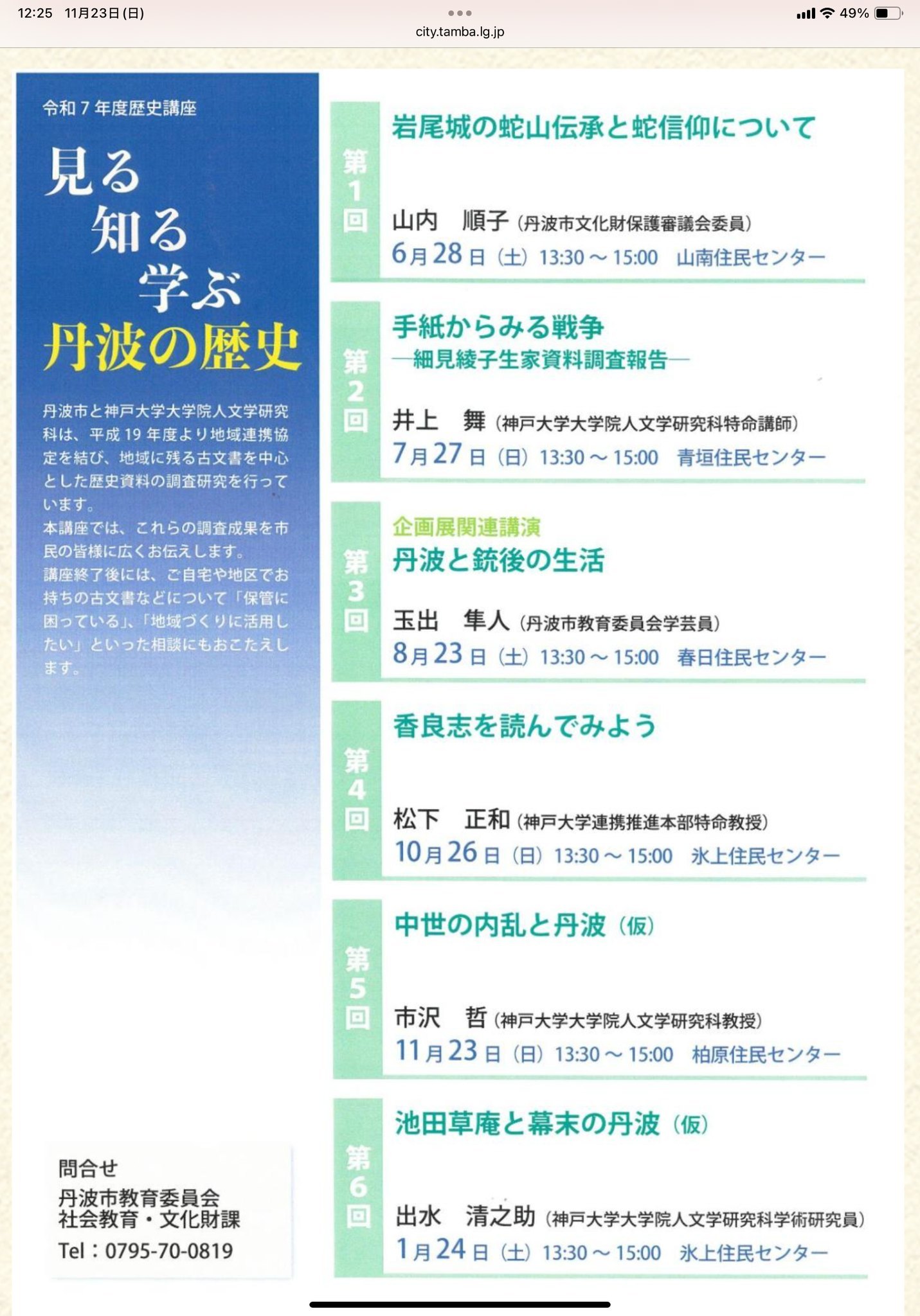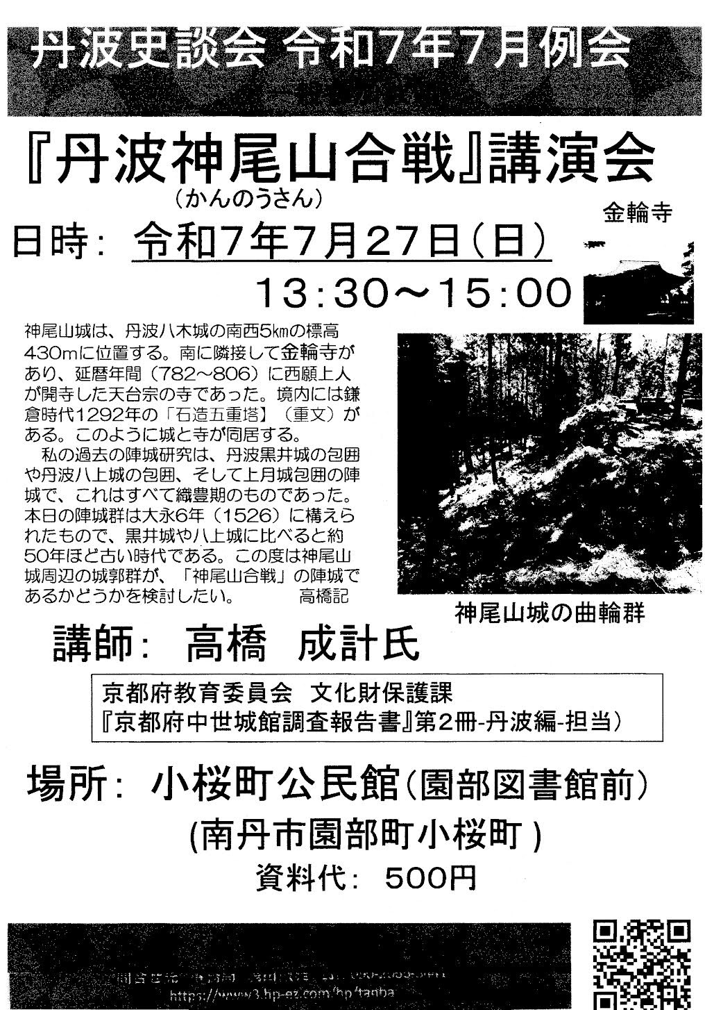 丹波市教育委員会が主催されている歴史講座