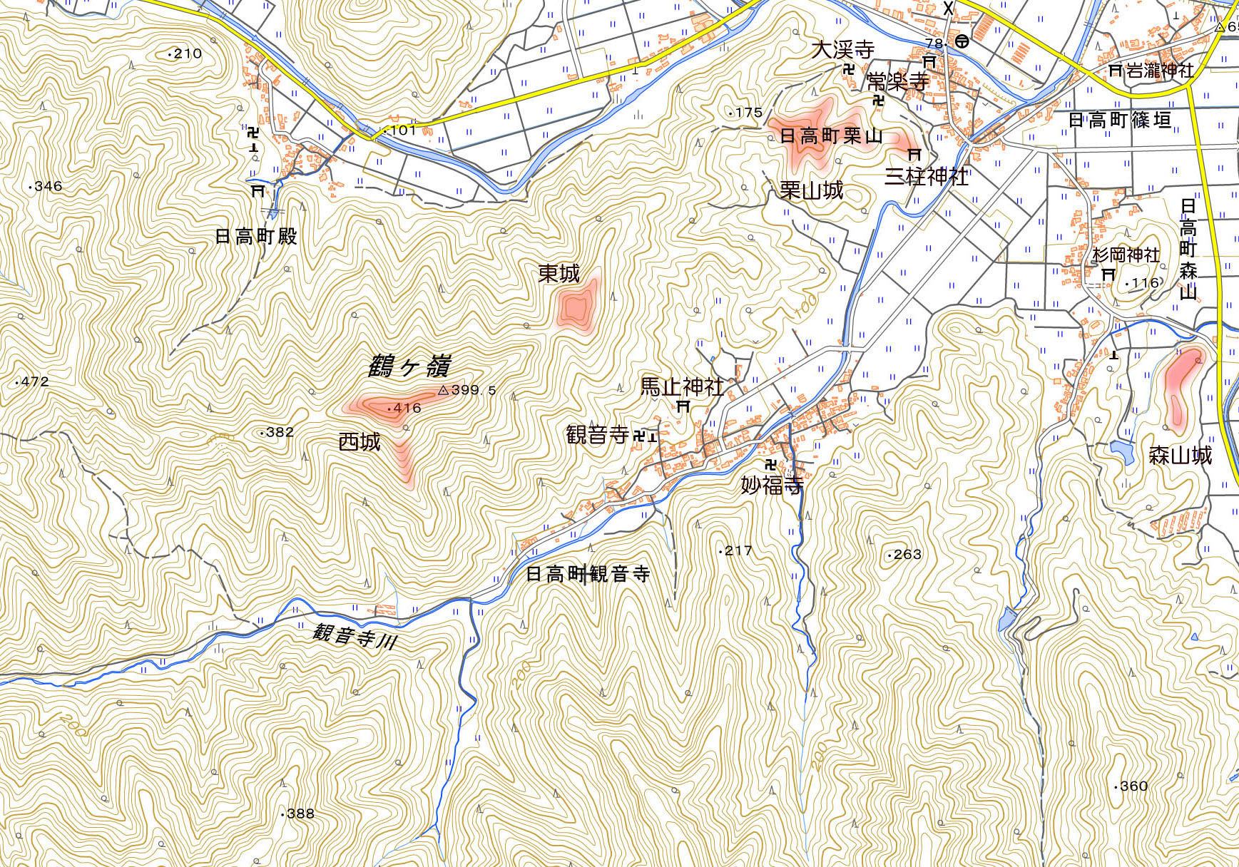 朝倉には朝倉本城・朝倉比丘尼城・朝倉向山城と三つの山城がある。